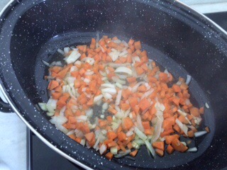 Sauté the onions in the olive oil with the celery, carrot, garlic and most of the parsley for about 10 minutes.